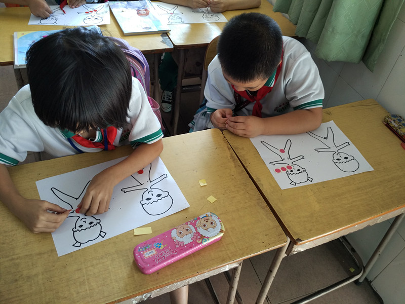 ▲ 学生在身体图隐私部位贴“红灯”