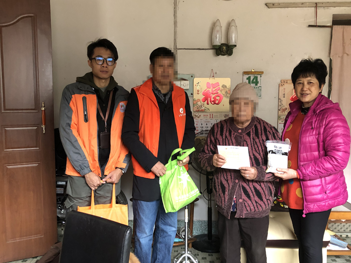 坦西社区妇联负责人、社矫义工与社工一起探访独居老人