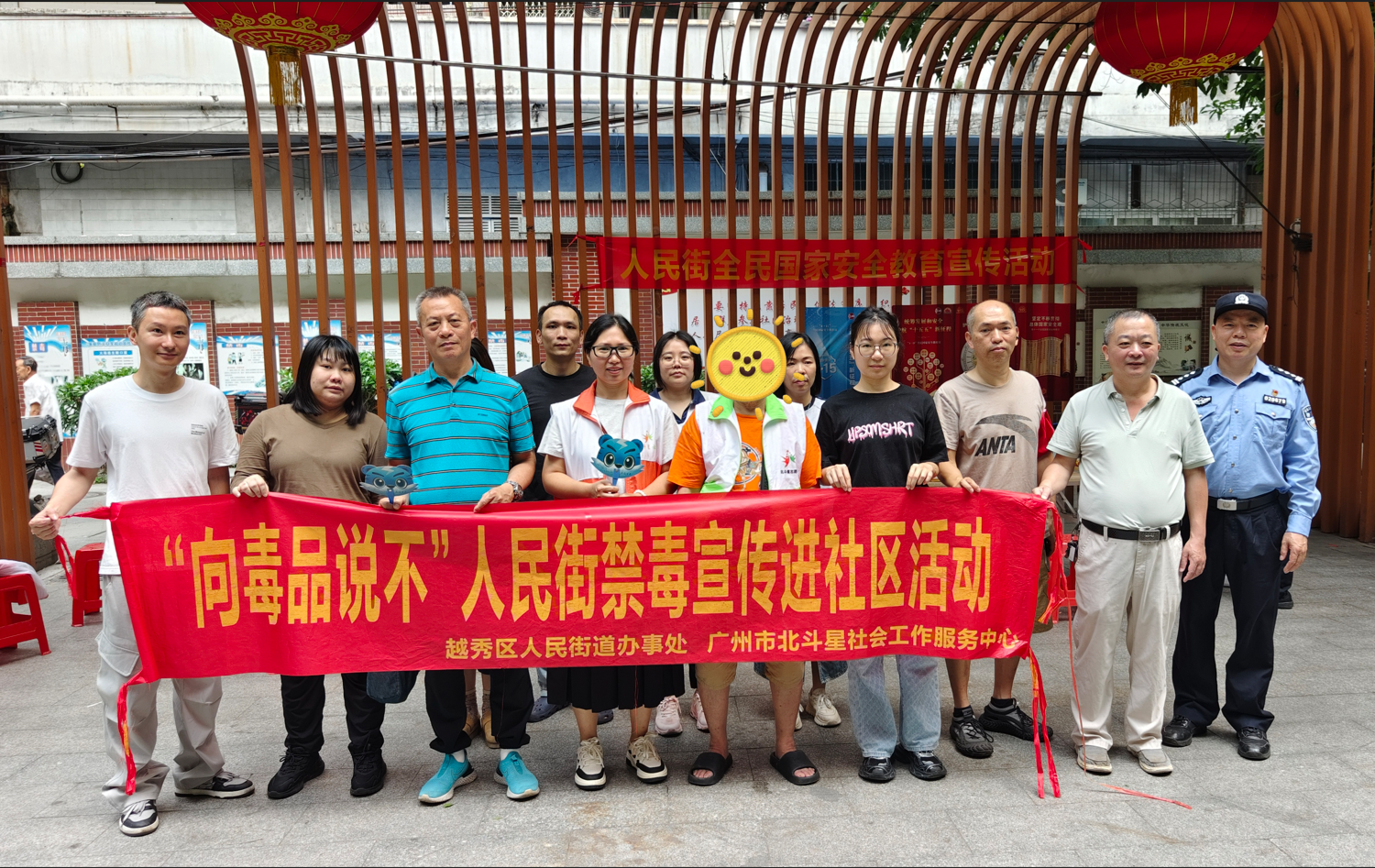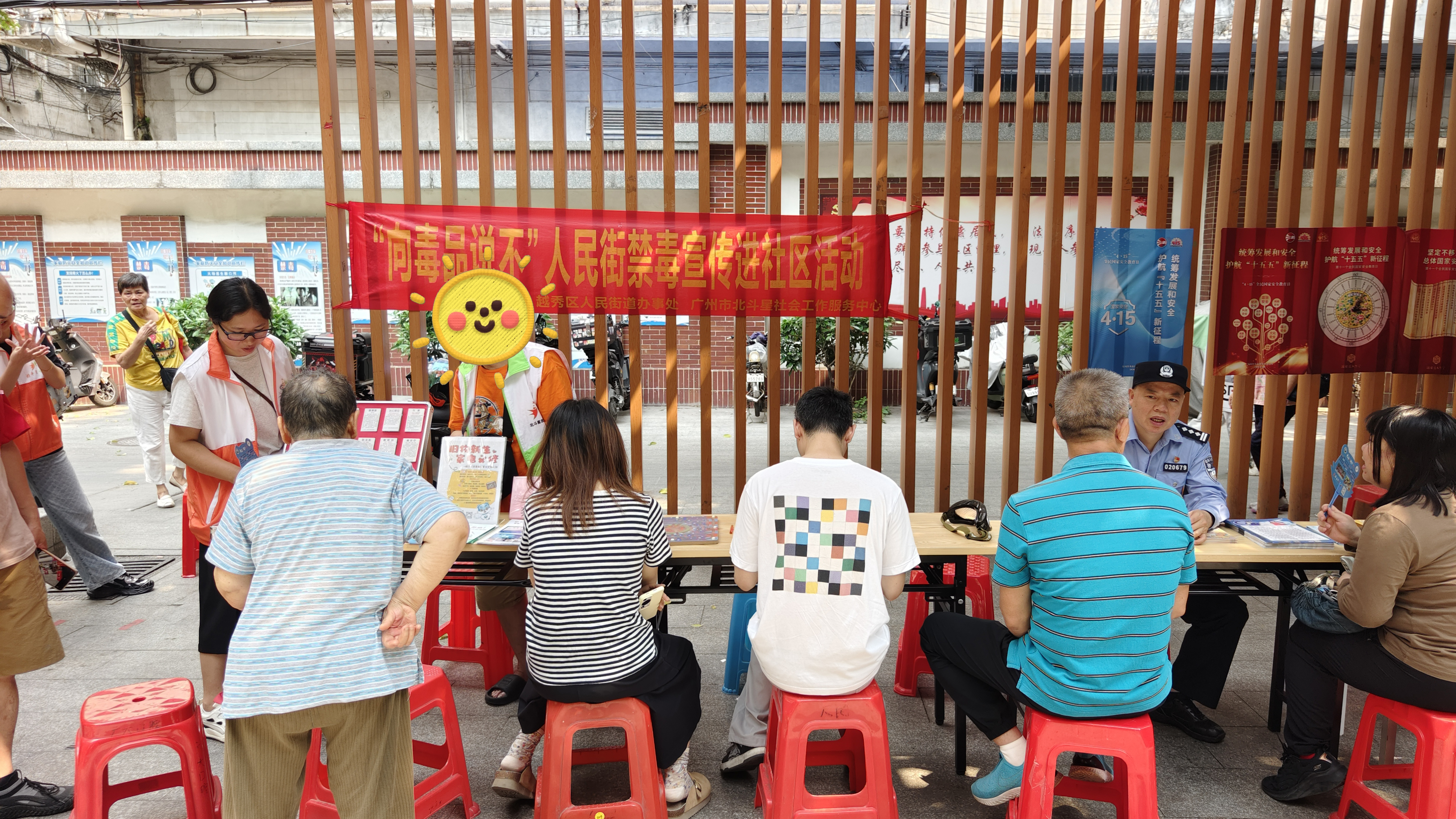 为提升全民禁毒意识,普及防范电信网络诈骗知识,构建平安无毒社区,2026年4月15日上午,在越秀区禁毒办指导下,人民街平安法治办联合人民派出所、越秀北斗星禁毒社工在大德中广场举办“禁毒齐心净环境,反诈协力保安全”为主题的禁毒宣传进社区活动。